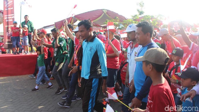 "Kegiatan jalan sehat ini kami pilih untuk menunjukkan tema dukungan kami, Satukan Langkah, Majukan Bangsa, Berkibar di Asia, " kata Paulus I Nugroho, Marketing Director PT Santos Jaya Abadi di Puspa Agro Desa Jemundo Taman Sidoarjo, Minggu (23/9/2019).
