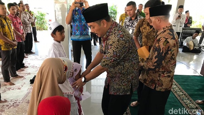 Acara diawali dengan pemberian santunan anak yatim, dilanjutkan dengan doa bersama yang dipimpin seorang ustaz. Tak ketinggalan, selawat Nabi terus dilantunkan oleh yang hadir.
