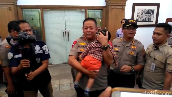 Usai memberikan keterangan kepada wartawan, Luki juga menyempatkan diri untuk menengok satu balita yang berhasil diselamatkan oleh polisi dari praktik perdagangan anak.