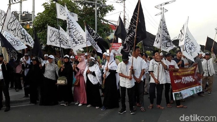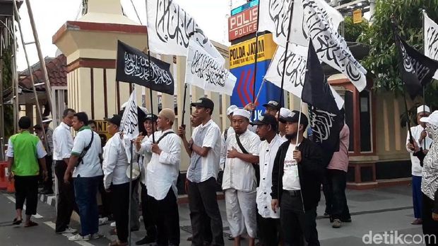 Aksi massa ini dilakukan sejak pukul 10.00 WIB. Pantauan detikcom, hingga pukul 17.00 WIB, massa masih berada di depan Mapolda sembari membawa spanduk dan bendera berlambangkan tauhid. Sementara, Gus Nur masih diperiksa sebagai tersangka kasus pencemaran nama baik.