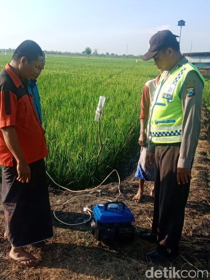"Tanpa sadar, ketika sedang menyemprotkan pestisida ini korban juga mengayunkan tangannya untuk menghalau burung, tangkai semprot yang dipegang korban mengenai aliran listrik," kata Kasubag Humas Polres Lamongan, Kompol Harmudji pada wartawan.
