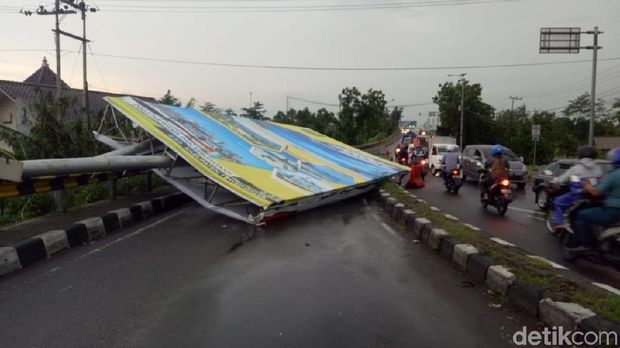 "Saya sudah monitor, ini anggota BPBD berkoordinasi dengan pemilik baliho serta dinas terkait untuk melakukan evakuasi. Namun karena ukuran baliho cukup besar, sulit untuk dilakukan evakuasi secara manual," jelas Randy.