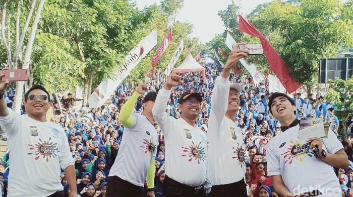Ribuan kaum milenial dari kalangan pelajar dan mahasiswa memadati Jalan Yosonegoro, tepatnya di depan Satadion Magetan. Tubuh dan pakaian mereka dibubuhi dengan cat beraneka warna.