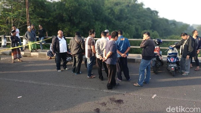 Informasi yang dihimpun mengungkapkan, korban sebelumnya terlihat mengendarai motor matic membonceng dua orang cewek. Mereka kemudian menuju sebuah warung tak jauh jembatan itu.