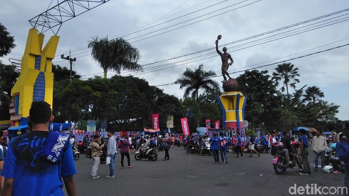 Seperti pantauan detikcom, ribuan suporter mulai memadati Jalan Trunojoyo yang mengarah ke Stadion Kanjuruhan. Kemudian di area stadion, para pedagang atribut Arema sudah mulai menggelar dagangannya.