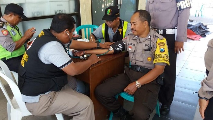Kapolrestabes Surabaya Kobes Pol Rudi Setiawan mengatakan, pemeriksaan kesehatan dilakukan keliling serentak di setiap kecamatan yang merupakan instruksi dari Kapolda Jawa Timur Irjen Pol Luki Hermawan. Sebab banyaknya jumlah TPS serta terbatasnya waktu yang hanya 5 hari saja untuk melakukan rekapitulasi suara.