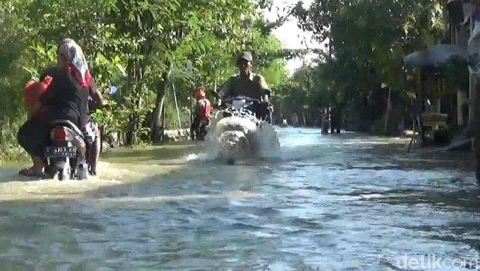 Khoirul yang terpaksa harus mendorong sepeda motornya karena mogok mengaku, jalan poros kecamatan yang terendam itu sepanjang lebih kurang 4 km. Mulai dari Desa Kemlagi Lor, Kecamatan Turi hingga ke Desa Tiwet, Kecamatan Kalitengah.