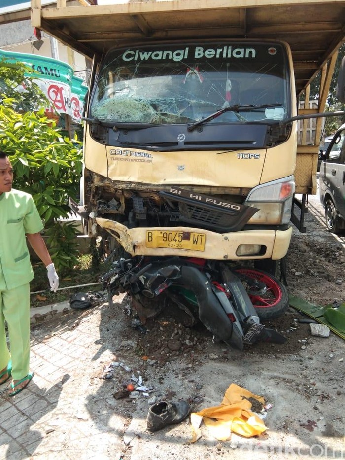 Sesampainya di lokasi, secara bersamaan muncul dari arah berlawanan motor yang dikendarai oleh Pudjianto yang membonceng istrinya. "Sepeda korban berjalan terlalu ke kanan dan lepas kendali. Baik pengemudi truk maupun pengendara sepeda motor sama-sama tidak bisa menghindar, akhirnya terjadi tabrakan," terang Purwanto kepada detikcom, Senin (6/5/2019).
