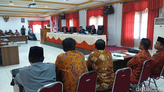 Sidang dipimpin Ketua DKPP Harjono. Dari pihak teradu adalah ketua Bawaslu Hadi Margo Sambodo dan empat komisioner lainnya yakni Agil Akbar, Usman, Yaqub Baliya, dan Hidayat. Sedangkan dari pihak pengadu tampak Anas Karno dan Dan Fredy Hartono dan sejumlah saksi.