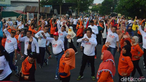Sementara itu, warga Kota Madiun bersama polisi dan Forkopimda menggelar olahraga bersama. Sekitar seribu warga tampak tumpah ruah mengikuti jalan santai dan bagi dorprize oleh Polres Madiun kota.