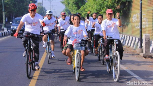 Di Kabupaten Madiun, ratusan pecinta sepeda memadati jalan Raya Madiun Ponorogo dan perkampungan. Bersama jajaran polres Madiun, warga yang di kenal kampung pesilat ini melakukan gowes untuk merayakan berakhirnya masa pemilu yang berlangsung damai hingga putusan MK.