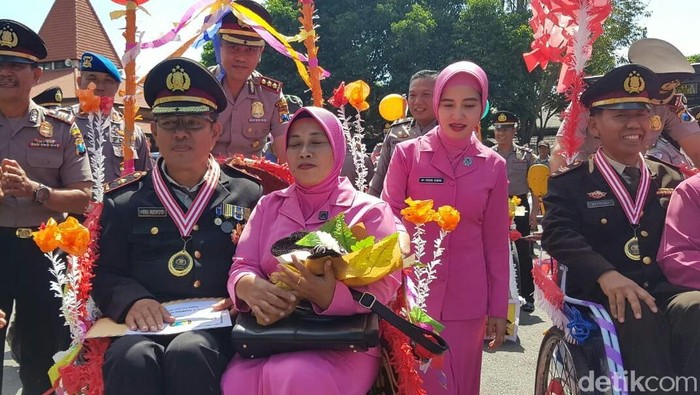 Upacara pelepasan para purnawirawan ini digelar di halaman Polres Banyuwangi hingga keluar jalan, Senin (8/7/2019). Seperti biasanya pelepasan diawali dengan upacara tradisi pedang pora. Kegiatan ini dipimpin langsung Kapolres Banyuwangi AKBP Taufik Herdiansyah Zeinardi. Usai tradisi pedang pora, para purnawirawan kemudian diminta naik ke becak yang disediakan.