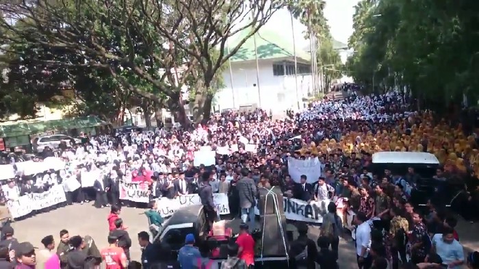 Video viral itu berdurasi 30 detik, yang merekam ratusan mahasiswa tengah menggelar aksi. Diawali orator melalui pengeras suara mengajak peserta aksi untuk menyanyikan lagu Indonesia Raya.