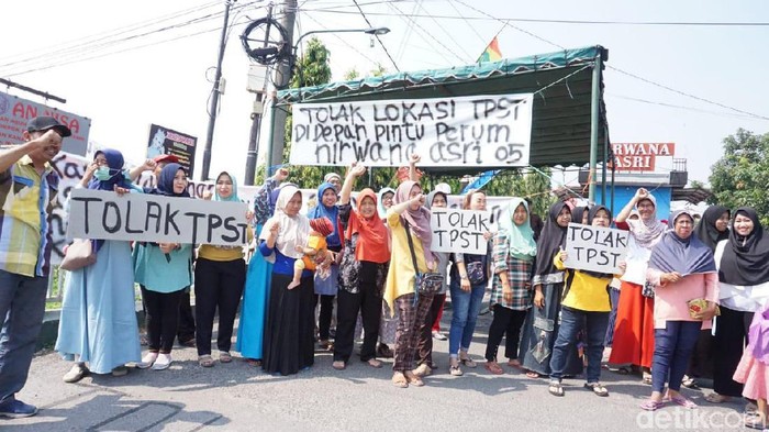Dari pantauan detikcom, puluhan warga Perumahan Nirwana Asri ini memulai aksinya pada pukul 08.00 WIB. Mereka membentangkan spanduk bertulisan 'Tolak Lokasi TPS di Depan Pintu Perumahan Nirwana Asri'.