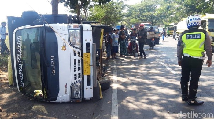 Setelah menghantam motor, truk tersebut kemudian menabrak sebuah kendaraan penumpang. Truk akhirnya terguling.