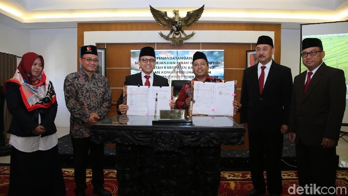 Penandatanganan ini dilakukan langsung oleh Bupati Abdullah Azwar Anas, Ketua KPU Dwi Anggraini Rahman, dan Ketua Bawaslu Banyuwangi Hamim, Selasa (1/10/2019).