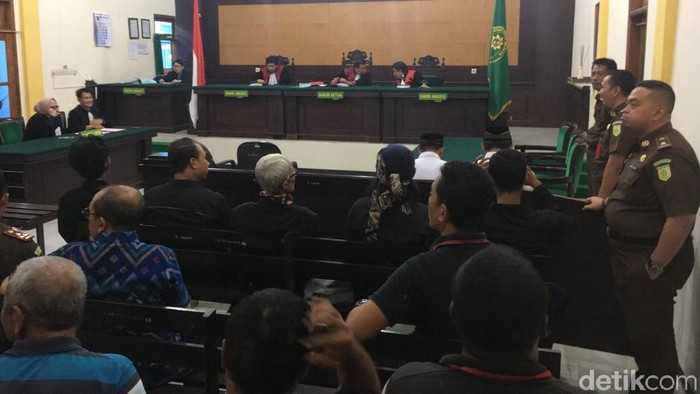 Sidang pembacaan tuntutan ini berlangsung di ruangan Cakra Pengadilan Negeri (PN) Mojokerto, Jalan RA Basuni, Kecamatan Sooko. Persidangan dipimpin Ketua Majelis Hakim Joko Waluyo, serta hakim anggota Erhammudin dan Juply S Pansariang.