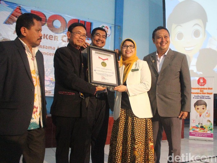 "Kegiatan ini sangat spektakuler dan pertama kali di Indonesia. Selama ini belum pernah ada kegiatan memberikan edukasi pengenalan obat terhadap anak-anak SD," kata Ngadri usai menyerahkan piagam MURI ke IAI di Sidoarjo, Sabtu (12/10/2019).