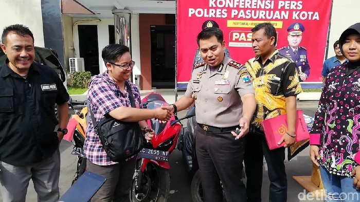 Pasuruan - Polres Pasuruan Kota menyerahkan enam motor hasil kejahatan yang telah ditemukan kepada para korban. Para korban mengaku tak menyangka tunggangan besinya bisa kembali ke tangan.