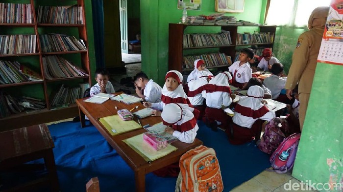 "Untuk kelas 3 menempati perpustakaan karena jumlahnya lebih sedikit, yakni 19 anak. Untuk kelas 6 ada 23 siswa, sedangkan kelas 5 ada sekitar 25," terang Satram.