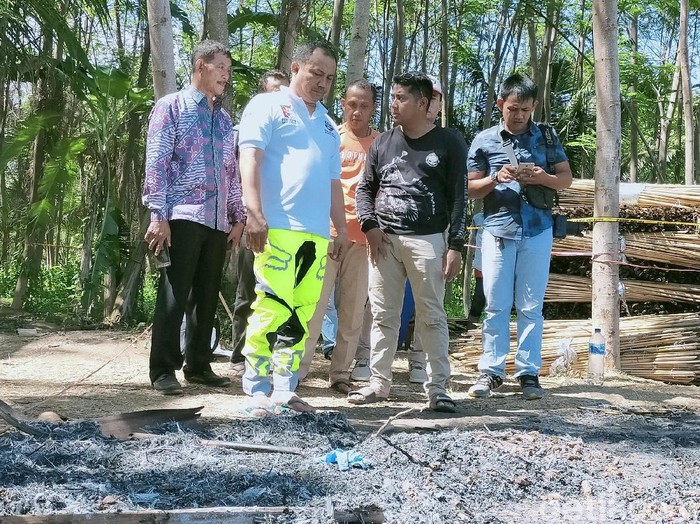 "Mayat ini ditemukan di pinggir kebun kelapa. Kayu yang digunakan membakar mayat ini adalah bambu untuk pagar tanaman cabai atau semangka. Ini semua ludes terbakar dengan membakar mayat ini," imbuhnya.