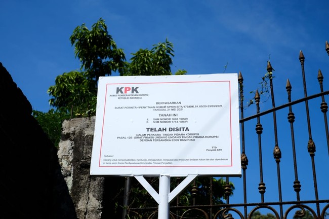 "Pemasangan minggu kemarin, ada beberapa orang datang membawa mobil dengan mengenakan rompi bertulis KPK. Mereka juga berpesan agar papan penyitaan dijaga dari tindak pengrusakan," ujar Aris kepada wartawan, Rabu (2/6/2021).