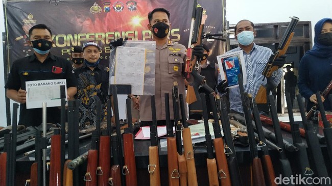 "Kami telah amankan dan tetapkan status W (41) sebagai tersangka, yang memproduksi tanpa izin senjata angin dan senjata api," jelas Kapolresta Blitar AKBP Yudhi Hery Setiawan di depan wartawan di Mapolresta Blitar, Kamis (3/6/2021).