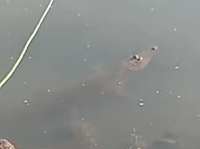 Buaya muara itu tampak diam di permukaan Sungai Sadar. Namun, buaya dengan panjang sekitar 2-2,5 meter itu kabur sebelum tambang menyentuh kepalanya. Aksi penangkapan buaya ini menjadi tontotan warga.