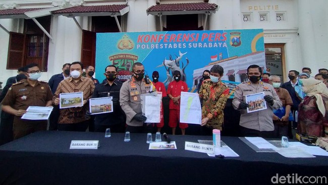 Satgas mafia tanahPolrestabes Surabaya membongkar kasus mafia tanah di Surabaya. Tiga orang ditetapkan sebagai tersangka dalam kasus ini.