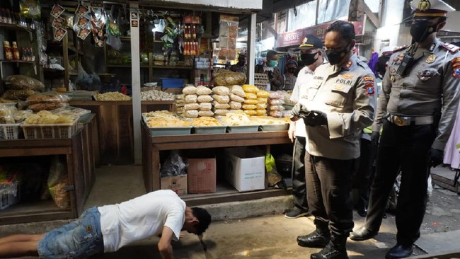 Dalam kegiatan yang dibalut operasi yustisi ini, para warga yang beraktivitas di luar rumah yang ketahuan tak pakai masker dihukum sosial dan push up. Sedangkan bagi anak anak yang pakai masker langsung dihadiahi biscuit coklat oleh polisi.