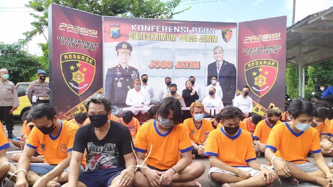 "Kami mengamankan 67 tersangka. Diamankan dari Pelabuhan Tanjung Perak, Terminal Purabaya, pangkalan truk, atau bus di Gresik, Sidoarjo, dan Mojokerto," ujar Gatot saat rilis di Mapolda Jatim Jalan Ahmad Yani Surabaya, Senin (14/6/2021).