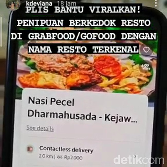 Kejadian ini terjadi di Surabaya. Seorang pengguna Instagram @kdeviana dalam insta storynya mengungkapkan jika aksi penipuan ini dilakukan sebuah restoran bodong di Jalan Kejawan Putih Tambak.