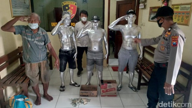 "Mereka berempat kami amankan ketika kami tengah giat Kring Serse, dan empat orang manusia silver ini di simpang tiga Desa Deket Kulon, Kecamatan deket," kata Kanit Reskrim Polsek Deket Ipda Sofian Ali kepada wartawan, Jumat (18/6/2021).
