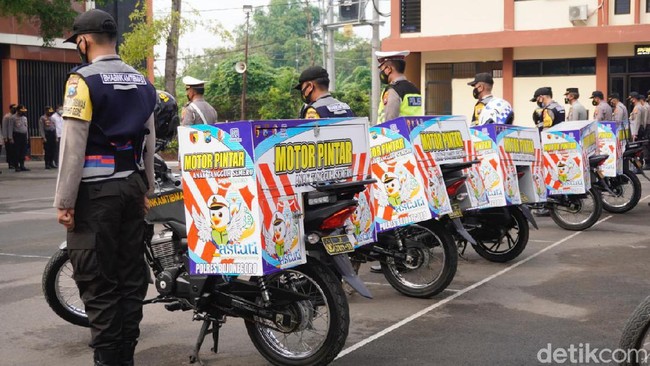 Selain membawa buku, motor itu juga dilengkapi laptop dan modem wifi. "Dengan boks yang dibonceng motor diharapkan para Bhabin bisa dengan mudah berkeliling kampung dan pelosok saat layani para anak-anak belajar," imbuh Pandia.