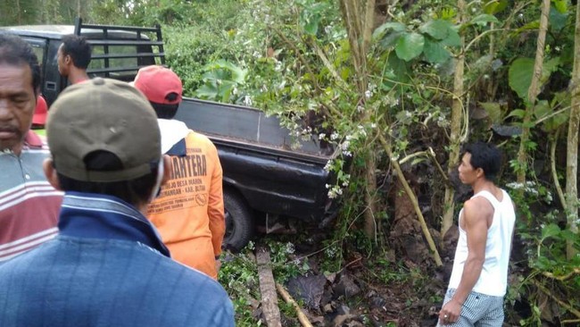 Beberapa warga sekitar membantu mengevakuasi korban. Sementara pamong desa setempat melaporkannya ke pihak kepolisian. Dari hasil olah TKP, faktor jalan yang menanjak naik dan kondisi licin karena habis hujan deras, membuat mobil pikap tak kuat menanjak.