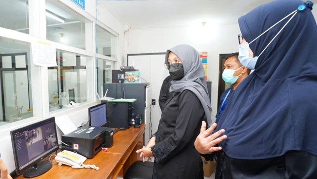 Bupati Banyuwangi Ipuk Fiestiandani mengecek kesiapan RSUD Blambangan, Selasa (22/6/2021), untuk menangani kenaikan kasus aktif COVID-19. Ipuk berkeliling RSUD Blambangan dan melihat segala fasilitas RSUD Blambangan terkait penanganan COVID-19.