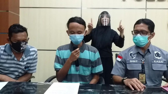 Didampingi kakaknya, Fauzih dihadirkan dalam jumpa pers yang digelar di Mapolda Jatim. Dia kemudian membaca pernyataan permintaan maaf kepada masyarakat atas ulahnya.