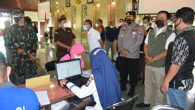 Bupati Pamekasan Baddrut Tamam meninjau pelaksanaan vaksinasi didampingi Forkopimda setempat, Sabtu (26/6/2021). Ada 3.300 warga yang menjalani vaksinasi COVID-19.