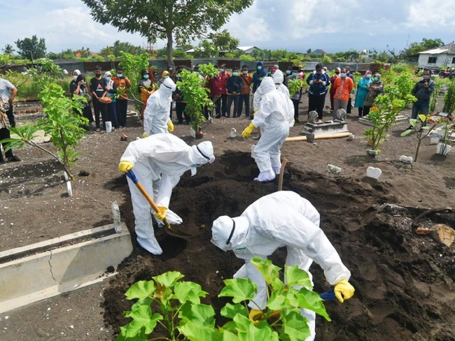 Menurut Indah, lonjakan kasus kematian COVID-19 membuat petugas pemulasaraan dan pemakaman jenazah kewalahan.