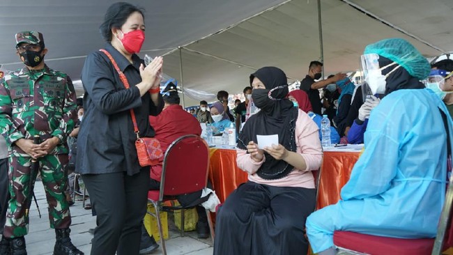 "Saya berharap vaksinasi hari ini akan mempercepat target vaksinasi dan tercapainya herd immunity di Surabaya dan Jawa Timur," kata Puan, di Gelora Tambaksari, Surabaya, Kamis (8/7/2021).
