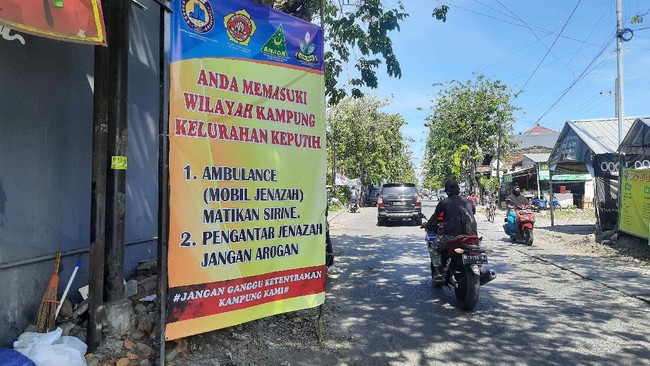 "Anda memasuki wilayah kampung Kelurahan Keputih. 1. Ambulance (mobil jenazah) matikan sirine. 2. Pengantar jenazah jangan arogan. #Jangan mengganggu ketentraman kampung kami#," berikut isi banner tersebut.