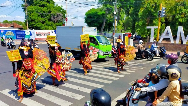 "Kami sangat mengapresiasi kegiatan para seniman Jaranan Buto. Mereka rela turun ke jalan untuk memberikan pengertian masyarakat agar patuh protokol kesehatan," tambahnya.