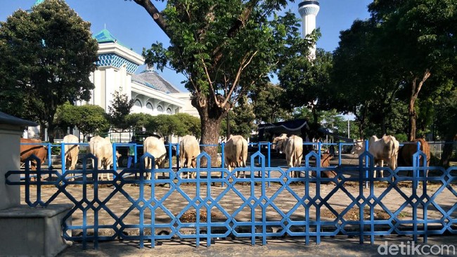 Ada 50 hewan kurban yang akan disembelih di Masjid Al Akbar. Termasuk sapi kurban dari Presiden Jokowi.