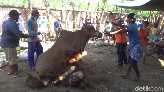 "Sapi Madura dari awal kita dapatkan memang terlihat agresif. Sehingga ketika hendak disembelih sapinya memberontak dan mengamuk. Tapi alhamdulillah sudah bisa dikendalikan dan akhirnya bisa disembelih," ujar Sekretaris Takmir Masjid Khoirun Najah, Harwandi kepada detikcom, Selasa (20/7/2021).