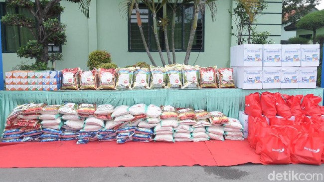 Selain bantuan beras hasil sinergitas tiga pilar, bantuan puluhan paket sembako dan obat-obatan juga datang dari donasi masyarakat, Bank BRI dan Bank Jatim.