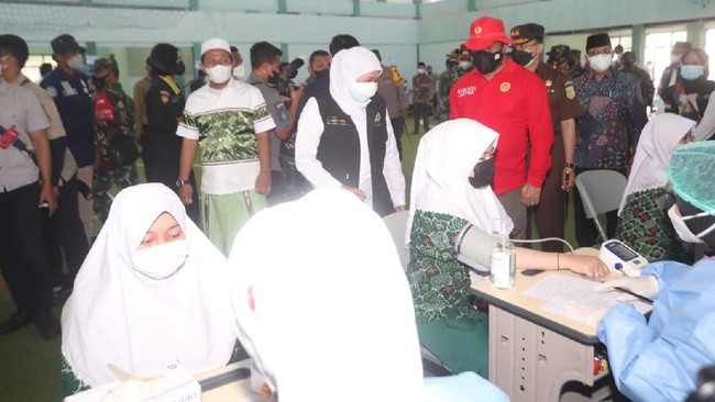 Khofifah menuturkan, saat ini Pemprov Jatim memaksimalkan pemberian vaksinasi ke para pekerja atau buruh, santri di ponpes, serta para pelajar dan mahasiswa.