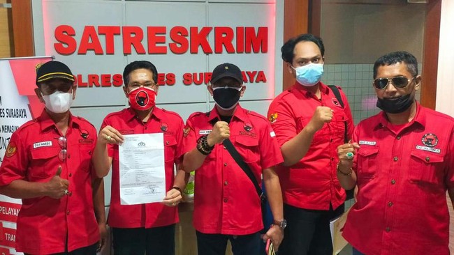Laporan itu disampaikan kepada Polrestabes Surabaya. Pengaduan dilayangkan Badan Bantuan Hukum dan Advokasi Rakyat (BBHAR) DPC PDIP Kota Surabaya. Turut mendampingi saat melakukan pelaporan adalah Wakil Ketua DPC PDIP Surabaya, Purwadi. Mereka diarahkan ke Sentra Pelayanan Kepolisian Terpadu (SPKT) Polrestabes Surabaya.