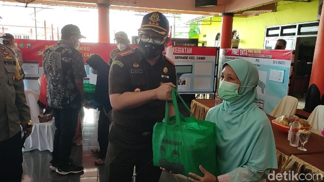 Kajari Sidoarjo Arief Zahrulyani memantau langsung pembagian bantuan beras di Desa Sepande, Candi dan Desa Ganting, Gedangan. Arief mengawasi penyaluran bantuan itu untuk memastikan tepat sasaran kepada masyarakat penerima.
