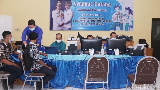 "Kami menerima 1.000 dosis vaksin pertama untuk sasaran anak usia 12 tahun ke atas. Langsung kita berikan kepada 1.000 siswa SMA dan SMK hari ini," kata Kepala Dinas Kesehatan Kota Pasuruan dr Shierly Marlena, saat mendampingi Wali Kota Saifullah Yusuf (Gus Ipul) meninjau vaksinasi di SMA 2 Pasuruan, Rabu (4/8/2021).