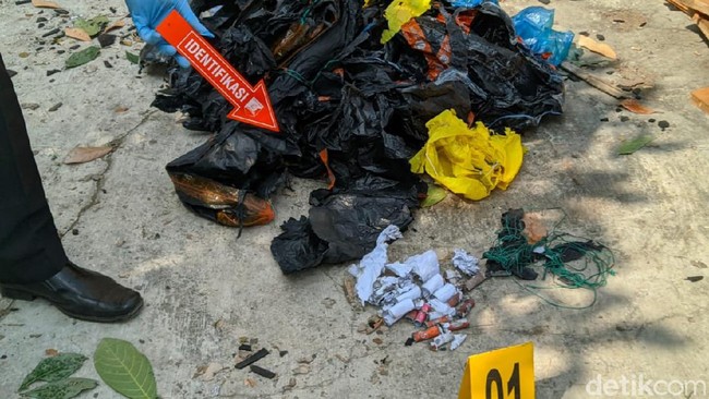 Di antaranya ada balon yang sudah terbakar, selongsong petasan, daun pintu yang rusak, jendela, pecahan kaca, atap hingga asbes rumah warga. Perkiraan ledakan terjadi akibat ribuan petasan yang dibawa balon udara.
